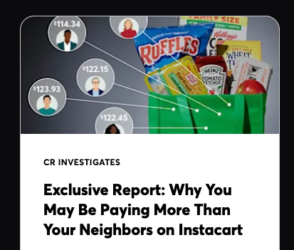Our investigation found that Instacart — which promotes itself as the nation’s largest third-party grocery delivery service, and delivers from retailers like Costco, Kroger, Sprouts Farmers Market, Safeway, and Target — is conducting AI pricing experiments that result in different customers paying more for the exact same grocery item, all without shoppers knowing about it.